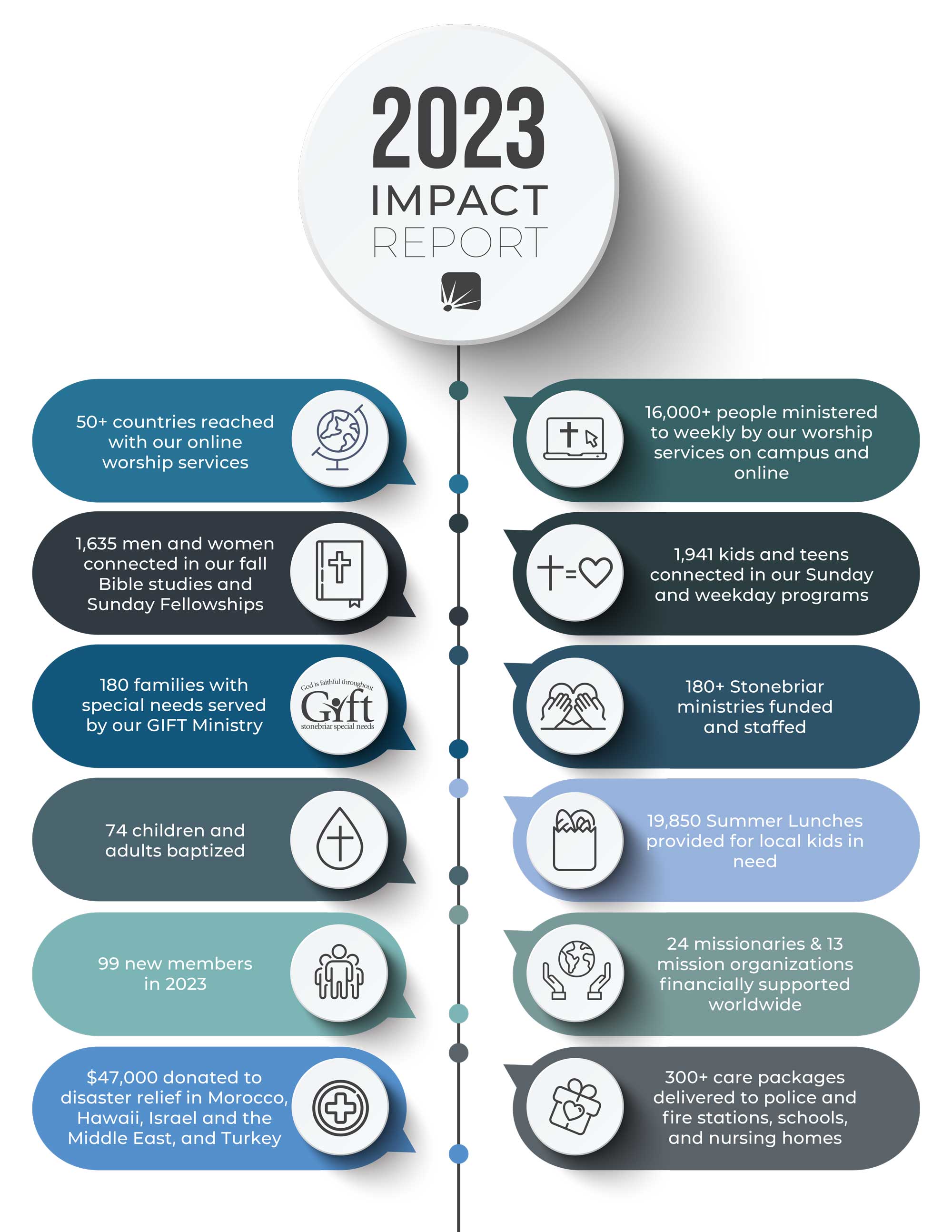 We have seen God use all things for His glory in amazing ways, and we want to express our deepest gratitude for your continued support of our church. Because of your generous gifts and faithful prayers, our church has been able to continue ministering in difficult times and expand our reach as we share the Gospel both locally and globally.